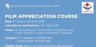 FTII के पांच दिवसीय फिल्म एप्रीसिऐशन कोर्स का देहरादून में आयोजन