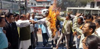 कांग्रेस ने भाजपा सरकार का पुतला फूंका