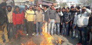 हिंदू जागरण मंच युवा वाहिनी ने भंसाली का पुतला फूंका