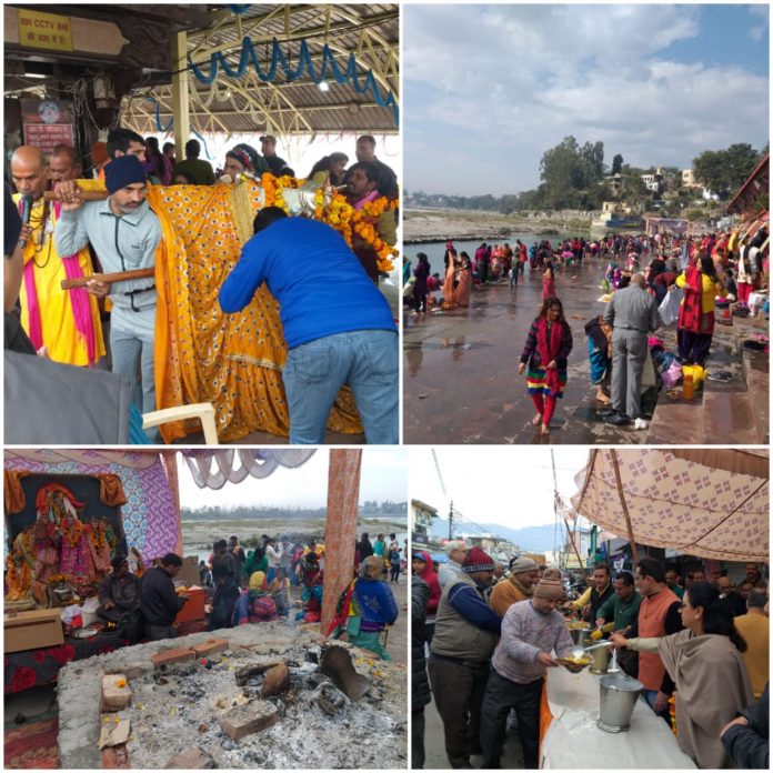 ऋषिकेश, कड़कडाती ठंड और कोहरे के बावजूद हजारों श्रद्धालुओं ने मकर सक्रांति पर त्रिवेणी घाट सहित रामझूला, लक्ष्मण झूला के घाटों पर गंगा में डुबकी लगाकर पुण्य अर्जित किया। इस दौरान श्रद्धालुओं ने खिचड़ी का प्रसाद भी वितरित किया।