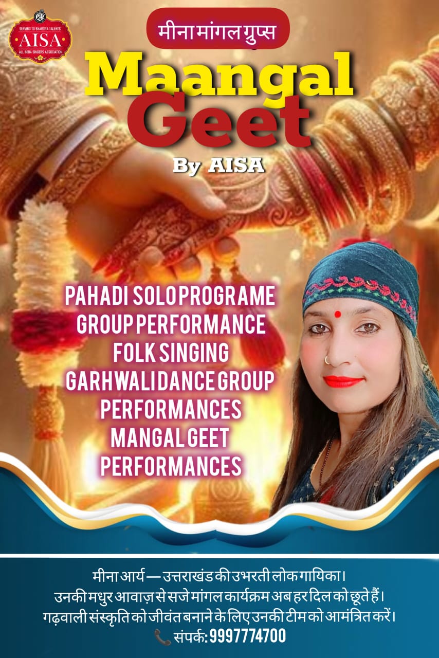 Dateline Mussoorie: Young, god-gifted singer, lyricist and composer Meena Arya from Basaghat village just on the outskirts of Mussoorie has put together the town’s first Maangal Group: a troupe of musicians and three women singers who will perform traditional song’s during auspicious ceremonies such as weddings, child birth, festivities on special invite in the hill-station.