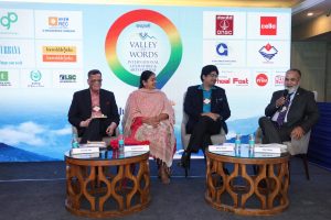 Dateline Dehradun: On 25th October 2025, the first day of the just concluded Valley of Words Litfest at Hotel Madhuban, the houseful Shabdawali Hall witnessed an interesting session of poetry reading by three poet – bureaucrats, Pramod Jain, Mugdha Sinha and Mukul Kumar. The session was moderated by son of the soil author – poet – lawyer Ajay Jugraan.