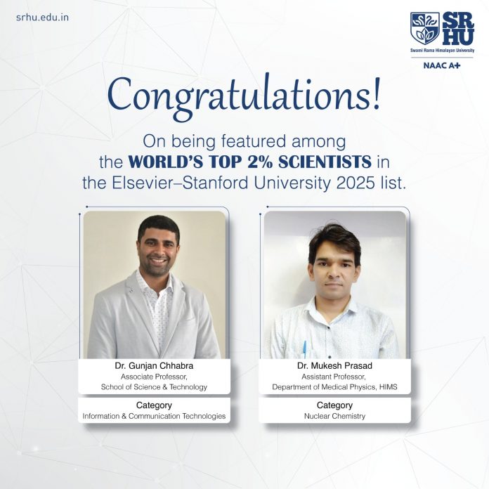 Dateline Doiwala: Swami Rama Himalayan University (SRHU), Jolly Grant, has added yet another global recognition to its name. This global ranking has been jointly released by Elsevier and Stanford University, California (USA), 2025, which annually identifies the top 2% of scientists worldwide.