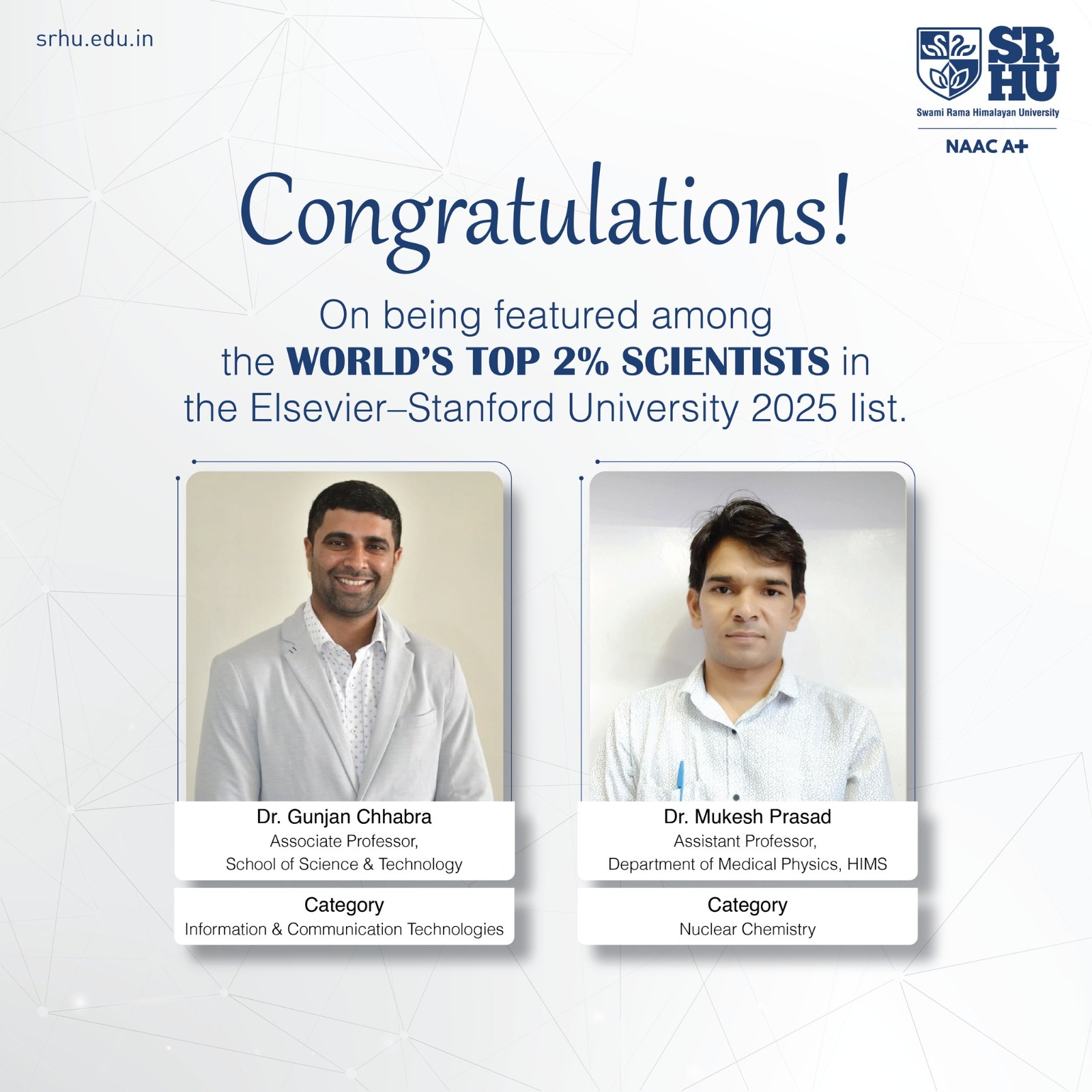 Congratulating the achievers, SRHU President Dr. Vijay Dhasmana said that this international recognition further elevates the reputation of the university. The selection of two faculty members by such a reputed process is a testimony to SRHU’s strong research culture and commitment to academic excellence. He noted that this is the second time SRHU professors have been included in the global list, an achievement that boosts the morale of the institution and inspires students who gain directly from the knowledge and expertise of these globally recognized scientists.