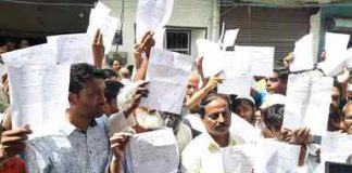 निगम की नोटिस के विरोध में बस्तीवासियों का प्रदर्शन