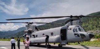 चिन्यालीसौड़ हवाई पट्टी पर उतरा सेना का चिनूक हेलीकॉप्टर