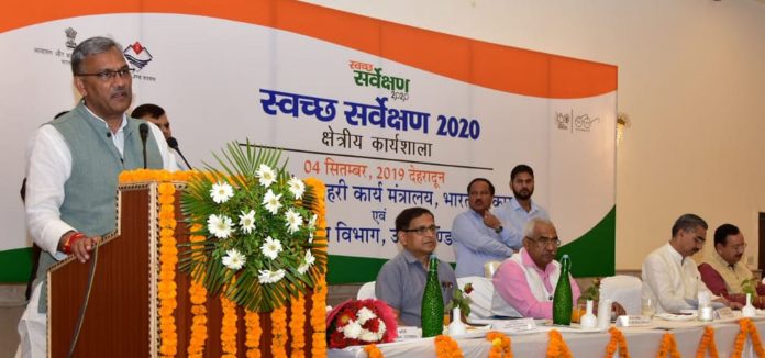 स्वच्छ सर्वेक्षण-2020 विषय पर नगर निकायों एवं छावनी परिषदों की एक दिवसीय कार्यशाला का मुख्यमंत्री त्रिवेन्द्र सिंह रावत एवं शहरी विकास मंत्री मदन कौशिक ने दीप प्रज्ज्वलित कर शुभारम्भ किया। इस दौरान सीएम ने कहा कि हमें उत्तराखण्ड को स्वच्छ, स्वस्थ, सामथ्र्यवान व सम्पन्न राज्य बनाना है। उन्होंने कहा कि उत्तराखण्ड का लगभग 71 प्रतिशत हरित क्षेत्र है। देश को शुद्ध वायु व जल प्रदान करने में उत्तराखण्ड की महत्वपूर्ण भूमिका है। पर्यावरण के संरक्षण के लिए जहां उत्तराखण्ड का विशिष्ट स्थान है, वहीं इसको संजोये रखना भी हमारी जिम्मेदारी है। स्वच्छता अभियान को सफल बनाने के लिए जन सहयोग जरूरी है। जन आन्दोलन से ही हम किसी अभियान को सिद्धि तक पहुंचा सकते हैं। स्वच्छता अभियान के लिए प्रत्येक नागरिक को अपनी जिम्मेदारी समझनी होगी।