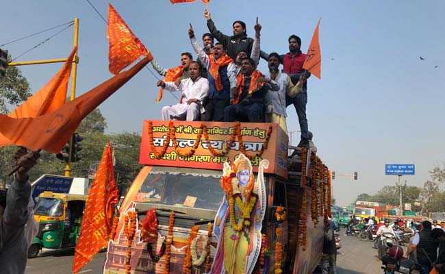 नई दिल्ली, अयोध्या में भव्य श्री राम मंदिर निर्माण के लिए स्वदेशी जागरण मंच के बैनर तले शनिवार को झण्डेवाला मन्दिर से ‘संकल्प रथ यात्रा’ शुरू हुई। महामण्डलेश्वर राघवानंद महाराज और राष्ट्रीय स्वयंसेवक संघ (आरएसएस) के दिल्ली प्रांत संघचालक कुलभूषण आहूजा ने रथ को विधिवत पूजन के बाद रवाना किया।
