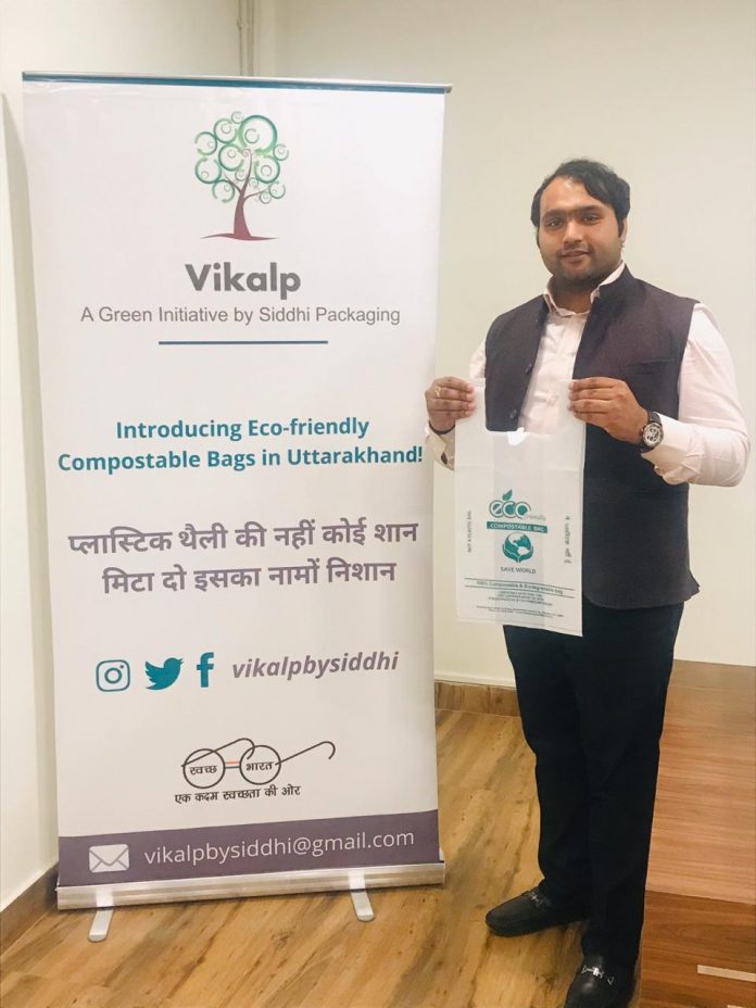 पेशे से इंजीनियर, 32 साल के तरुण गोयल ने अबू धाबी में अपनी नौकरी छोड़ देहरादून का रुख़ किया और सिंगल यूज प्लास्टिक के निस्तारण के लिये नये विकल्प की तलाश में लग गये। तरुण ने अपनी कंपनी बनाई, आज वो उत्तराखंड की ऐसी कंपनी के मालिक हैं जो ऐसे बैगों का निर्माण करती है जो 12 से 13 हफ़्तों में कंपोस्ट में परिवर्तित हो जाते हैं।